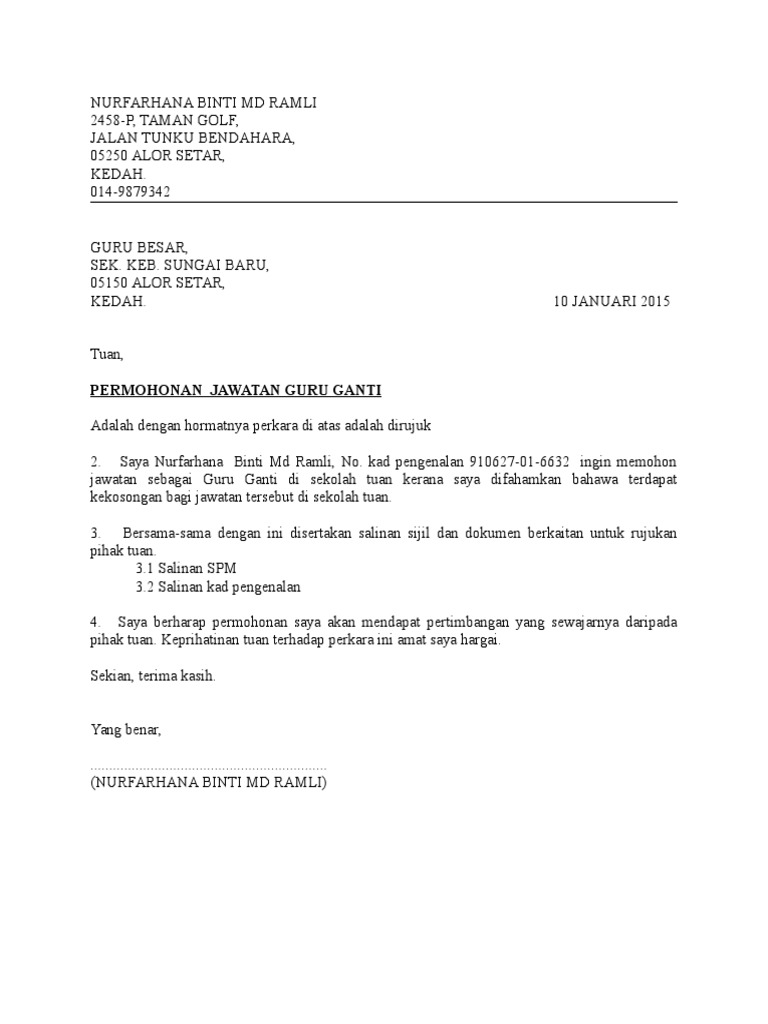 Surat Mohon Jawatan Guru Ganti Ppd Kerian Pdf