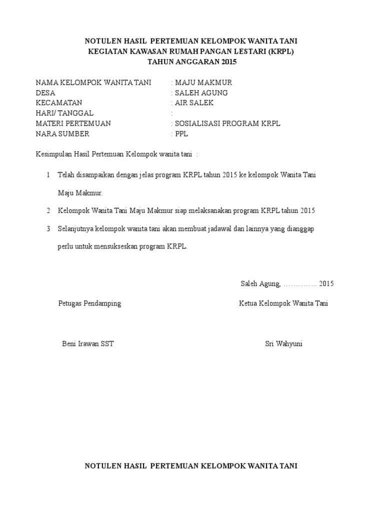Contoh Notulen Rapat Format Word Terbaru Go Edukasi